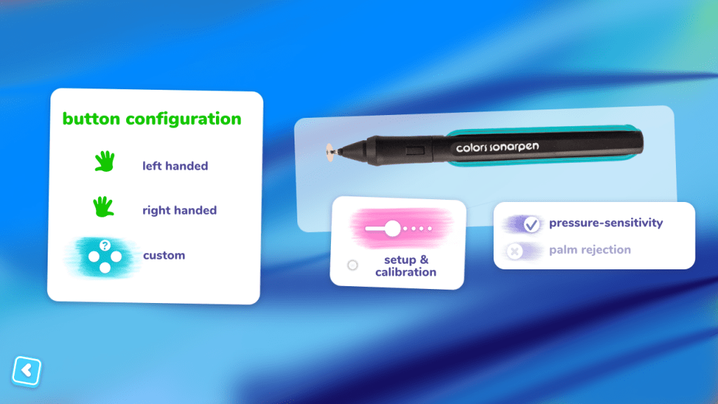 - Colors SonarPen: features Pressure-Sensitivity, a natural painting feeling and fully customizable stroke thickness, opacity, or both.