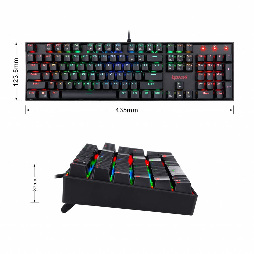 REDRAGON MITRA K551 - RGB is not a normal mechanical gaming keyboard. Not only is this a great model for entering the world of mechanical keyboards, but they’ve made it overly robust, and they’ve installed plenty of advancement in the keyboard. The keyboard is made of premium aluminum and ABS plastic, and the keys are attached to a metal plate and are cast in two layers. The excellent switches feature extremely durable springs, the LED RGB backlight is clear and bright, the USB port is gold-plated, and the keyboard is splash-proof.