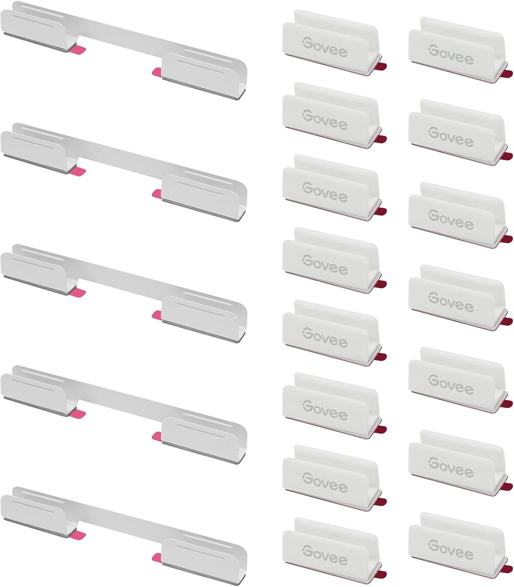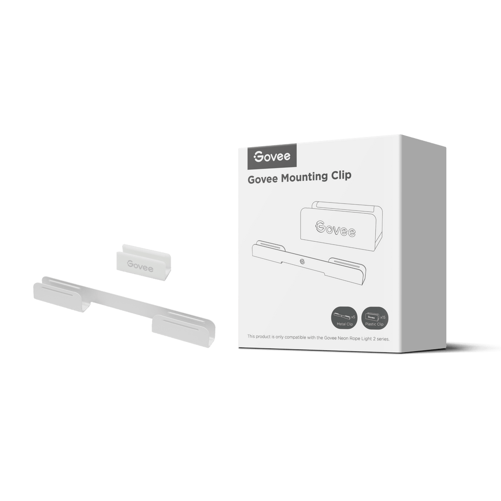 The Govee RGBIC Neon Rope Light mounting brackets include flexible metal clips designed for the H61D3 and H61D5 neon light models and are suitable for all smooth surfaces such as walls, ceilings and tiles. These brackets support all Govee light strip models.