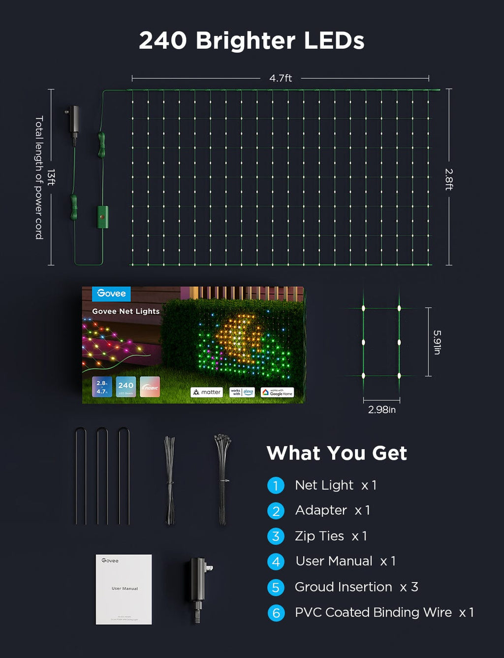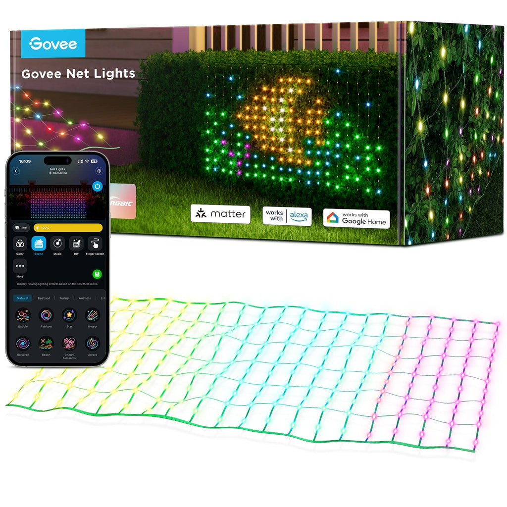 Govee LED net lights are designed to illuminate your garden or outdoor areas with vibrant colors and customizable lighting effects. Featuring advanced RGBIC technology and a weather-resistant design, they are an ideal choice for anyone looking to enhance their outdoor ambiance.