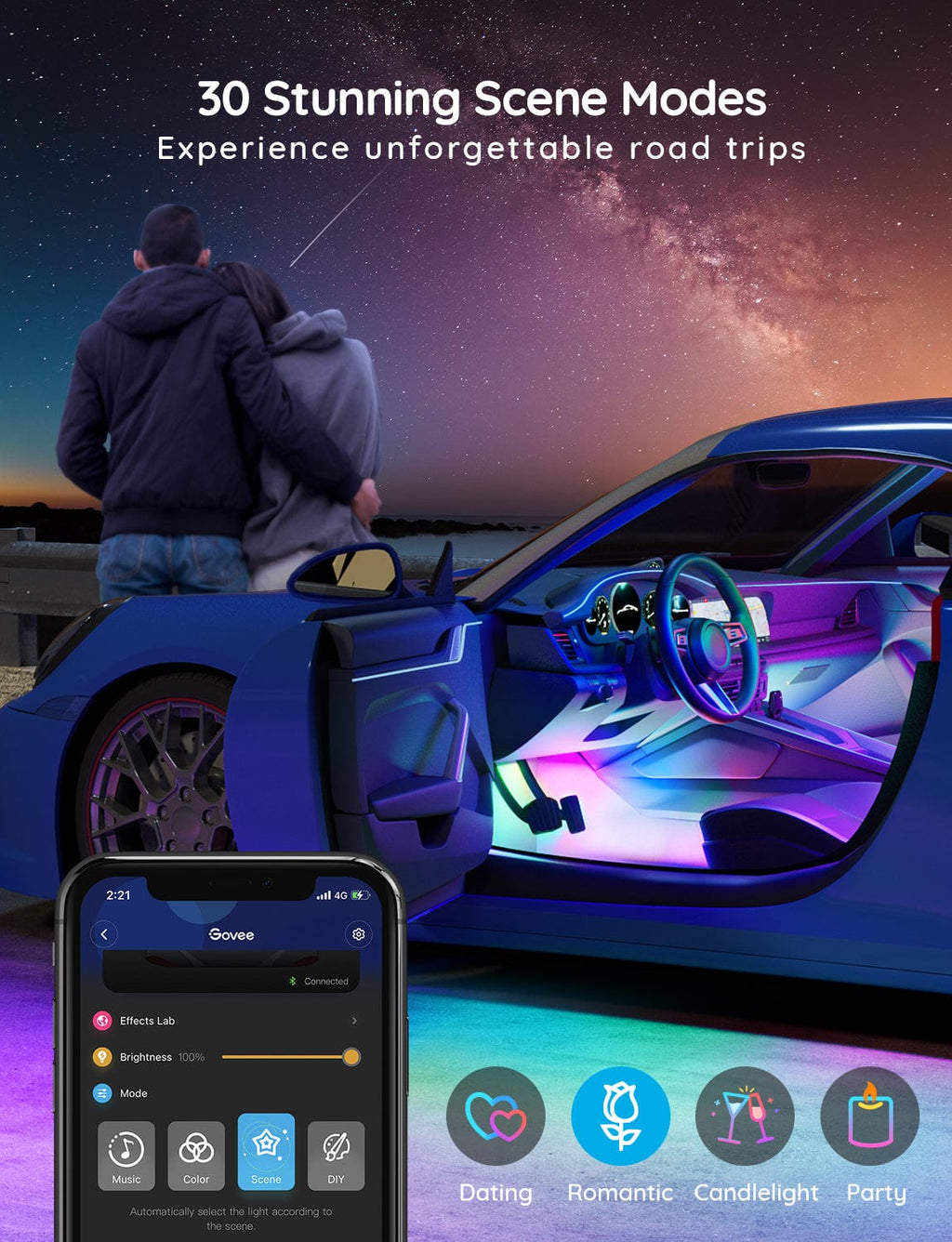 • Music Sync: The light strips can synchronize with music, enhancing the enjoyment of listening to your favorite tracks while driving.