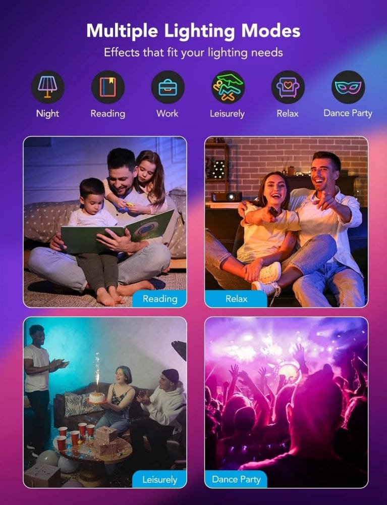 With Wi-Fi and Bluetooth connectivity, you can easily control the lights through the Govee Home App or via smart voice assistants such as Alexa and Google Assistant. Choose from 16 million colors, 65+ preset scene modes, and an exciting Music Sync mode where the lights react to your favorite beats.