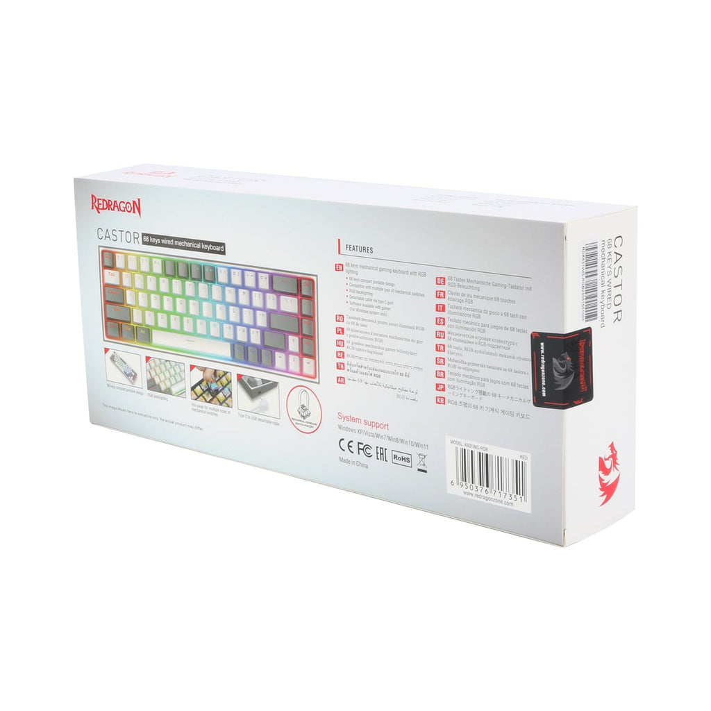 KEYBOARD - REDRAGON CASTOR K631WG-RGB WIRED RED SWITCH 6950376717351