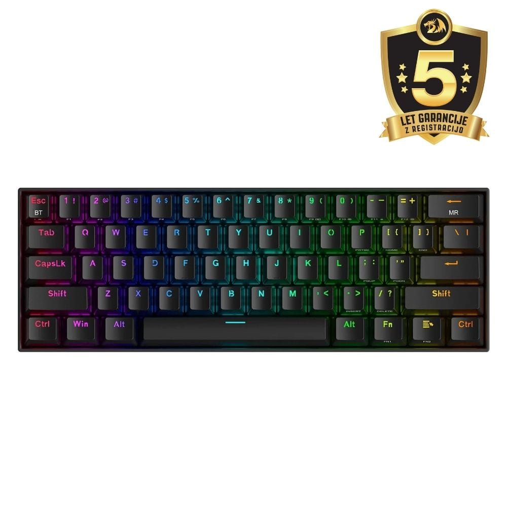 The Redragon Draconic K530RGB PRO is a professional gaming keyboard, an upgraded version of the Draconic K530 keyboard, equipped with the latest technology and features. It has 61 keys with an original compact 60% layout, which gives you more room for the mouse and better mobility. The "HOT-SWAP" function allows easy switch replacement without the need to remove the circuit board. The keyboard has three connection modes: wired USB-C, BT 3.0/5.0 and 2.4Ghz wireless modes, allowing you to easily connect to various devices. The keyboard lighting is RGB with 13 preset modes and 16 million color settings.