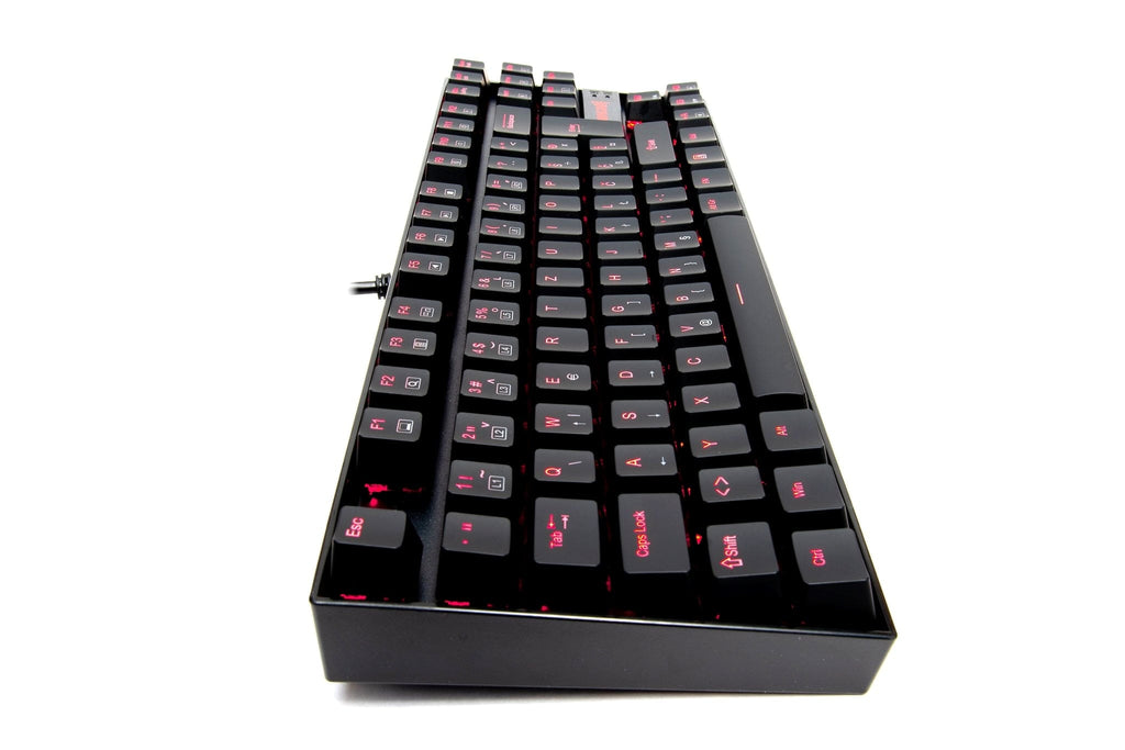 REDRAGON KUMARA 2 K552-2 is a mechanical gaming keyboard with a solid aluminum and ABS construction, double-injected keys, top-of-the-line switches with mechanical suspension, clear and brightly adjustable red LED lighting. The high-speed USB cable with gold-plated USB connector provides a reliable connection that will withstand fast hardcore gaming. Cherry Blue MX equivalent switches offer medium resistance, audible click sound and clear feedback for superior gaming performance. All 87 keys are equipped with mechanical switches, of which 12 are multimedia keys. Compatible with Windows XP / Vista / Windows 7 / Windows 8 / Windows 10. The compact keyboard design saves space on your desktop without losing performance and comfort while playing games. USB 2.0 makes it easy to connect to your computer. The keyboard is resistant to spills of liquids. The keys are meticulously crafted, the lighting clear and bright evenly illuminates the background of the letter, which does not wear out. Highly flexible LED red lighting allows 19 backlight modes and 6 brightness levels.