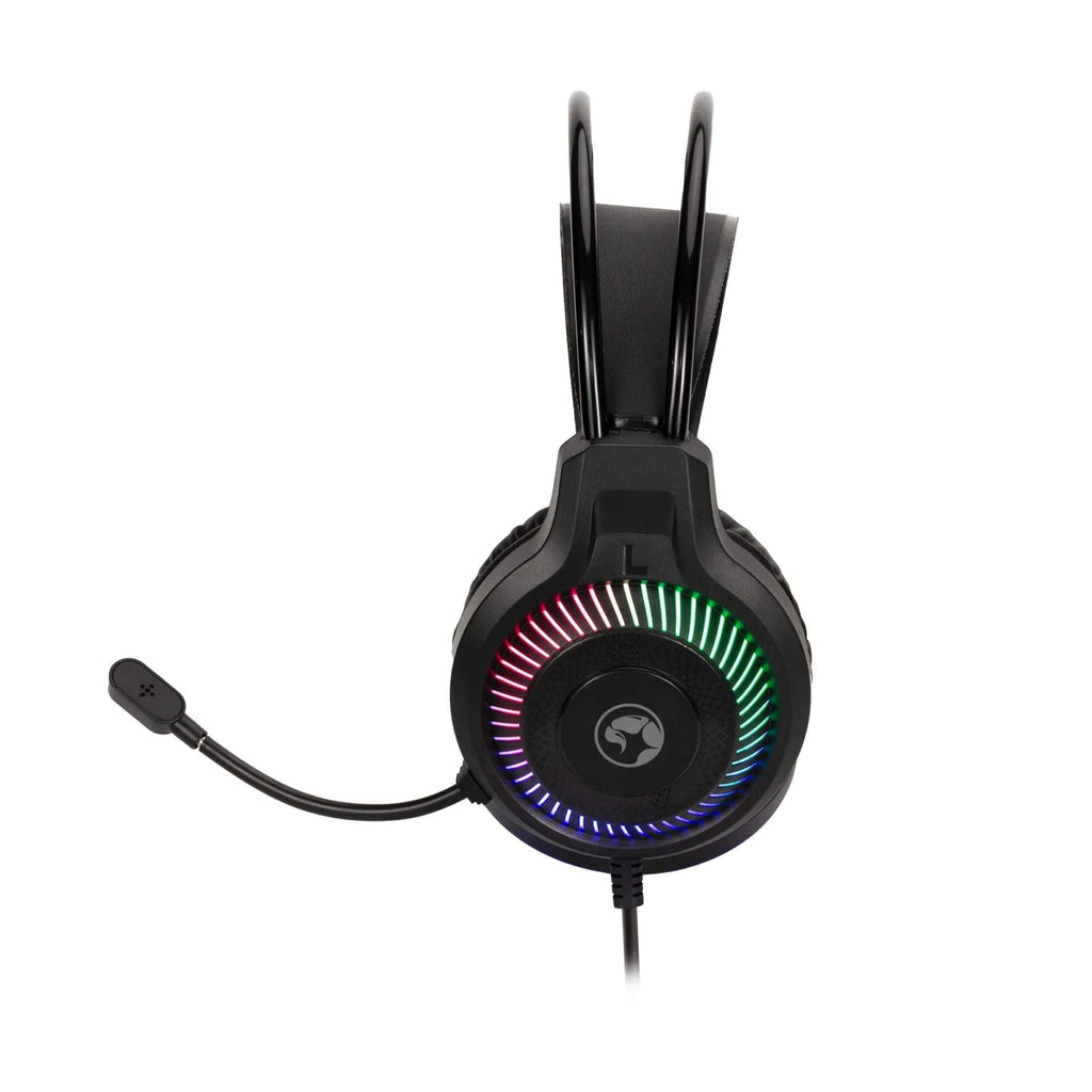 Headset: Over-ear headphones with 50 mm drivers, 20 Hz–20 kHz frequency response, and 32Ω ±15% impedance. The USB and 3.5 mm connection, along with a 2-meter braided cable, ensure comfort and durability.