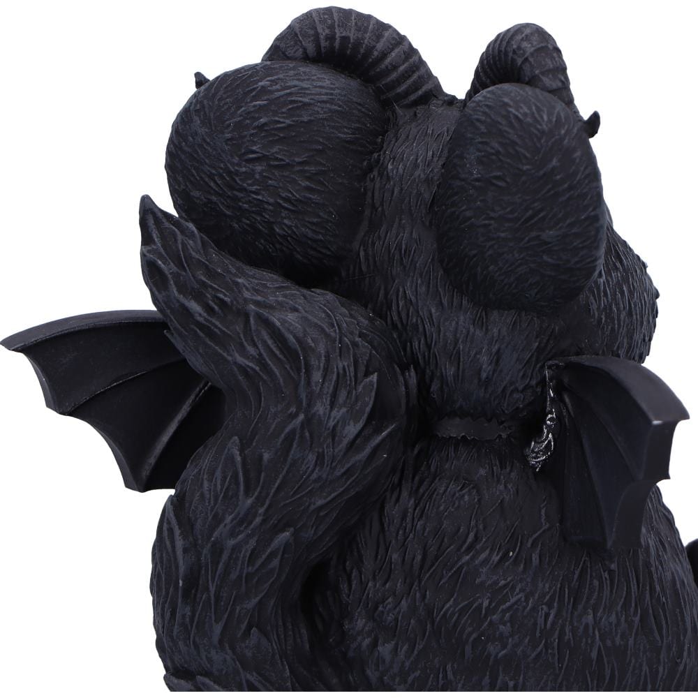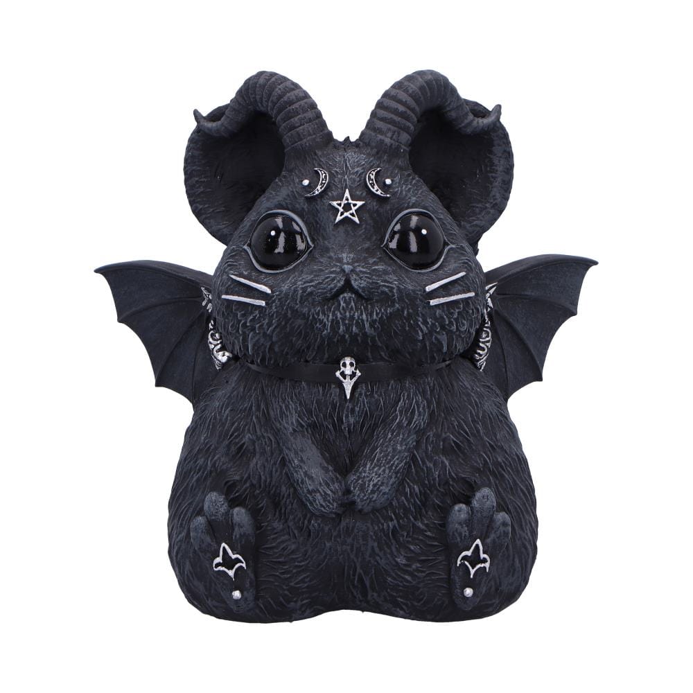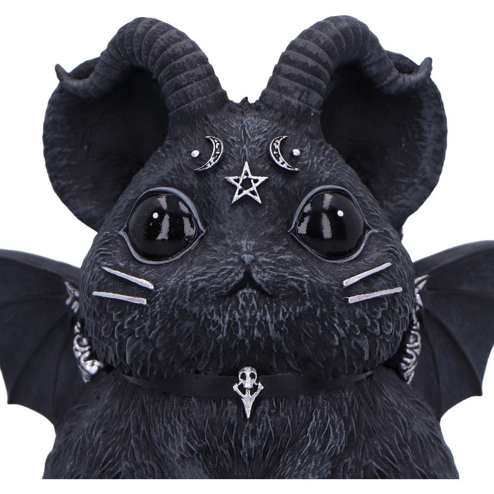 Unveil the dark charm of Marchillias, the latest addition to the Cult Cuties™ range. This unique figurine, inspired by a chinchilla, captures the essence of gothic allure with a touch of whimsy. Marchillias boasts adorable features, including a pair of horns and bat wings, adding a fantastical twist to the lovable chinchilla form. Around its neck, a striking collar adorned with a silver skull emphasizes its bewitching character.