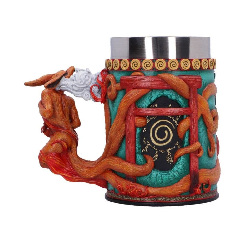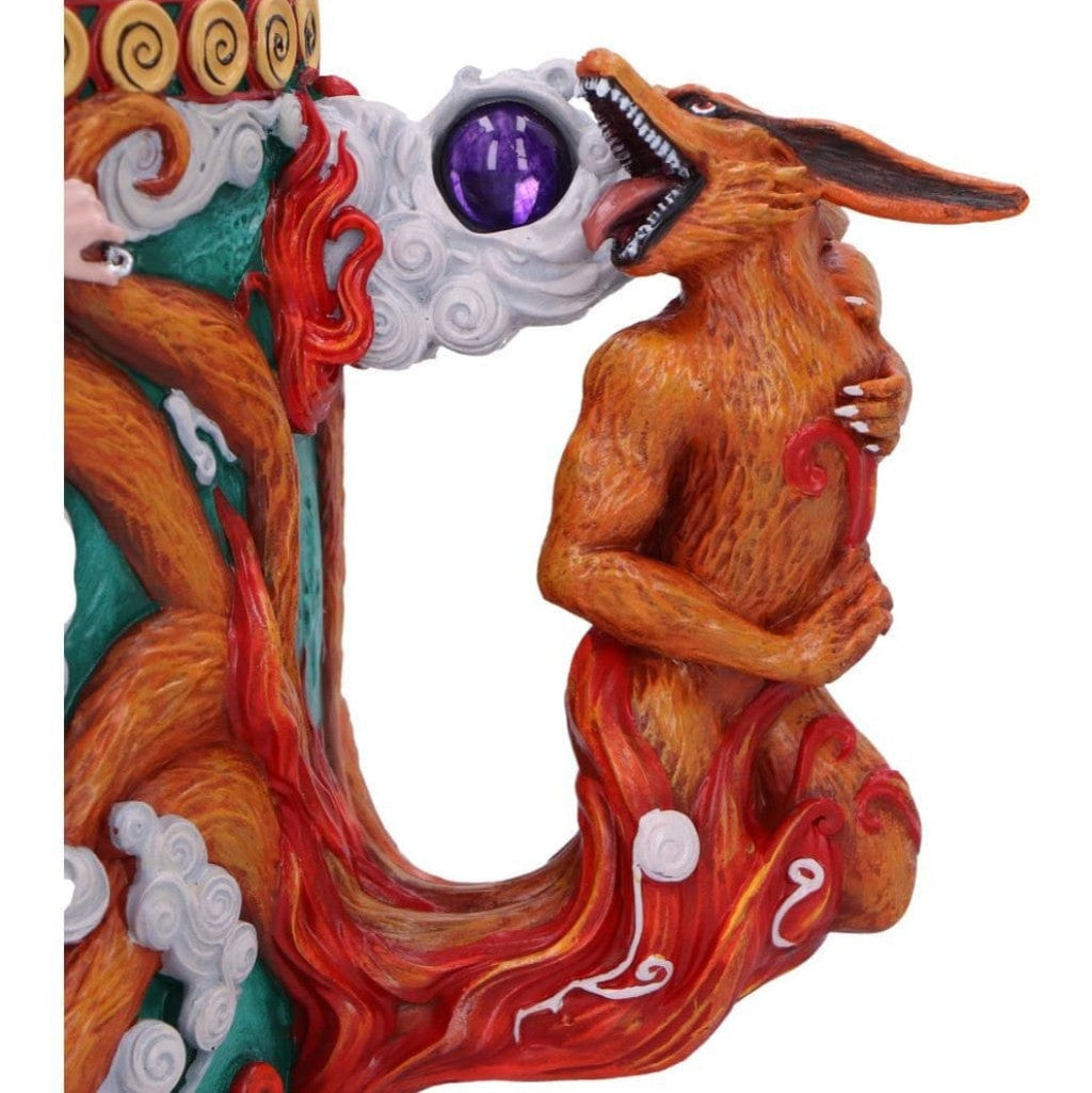 The product features an intricately sculpted design of Minato Namikaze, showcasing his speed and strength as a leader. The tankard depicts Minato in all his glory, with Kurama, the Nine-Tails, wrapping around the back to form the handle. Made from high-quality resin, the tankard is both durable and visually striking, with hand-painted details ensuring each one is unique. The removable stainless steel inner cup makes it easy to clean, combining both form and function.