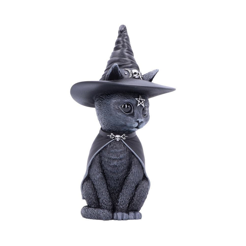 From the bewitching mind of our in house design team comes the Witch Cat, Purrah. This strange creature is the union of good and evil. As you look into its black eyes you notice that all is not as it seems, darkness resides within. The cat appears to be channelling the spirit of the witch, encapsulated by a large pointed hat and smooth cape. The cat is decorated in ornate silver detailing and occult symbology. Cast in high-quality resin and carefully hand-painted this figurine is likely to be the cutest occultist you've ever seen. Alongside Owlocen, the Witch Owl, this amalgamation of horror and delight will make the perfect addition to any feline fanatic's collection.