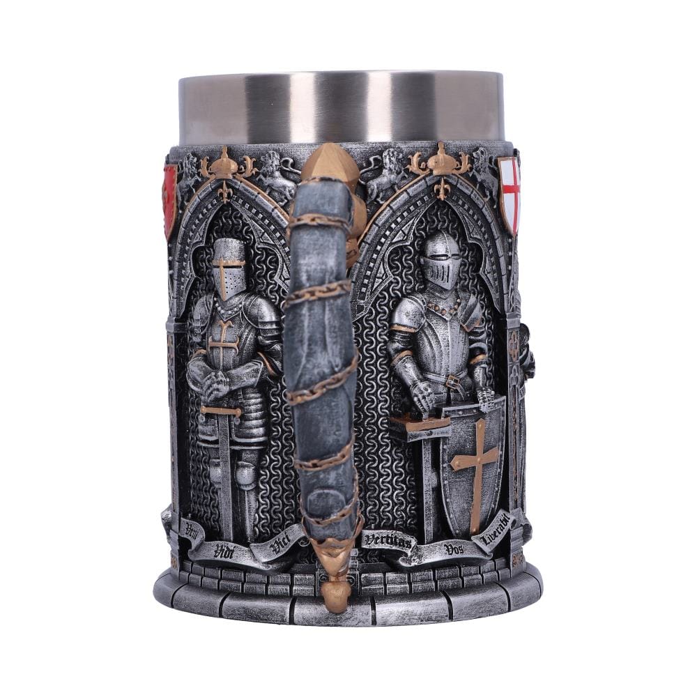 This Knight Tankard is perfect for any Medieval enthusiast. A number of Knights are raised from the sides of the body, separated by ornate arches. Emerging from a golden Fleur-de-lis, the handle has a silver base that is sharply contrasted by the golden chain detail which curls around. Expertly hand-painted, this tankard looks like it is made from solid steel and features a removable stainless-steel insert for easy cleaning. Available wholesale from Nemesis Now, this Tankardmakes an ideal gift for any knight!