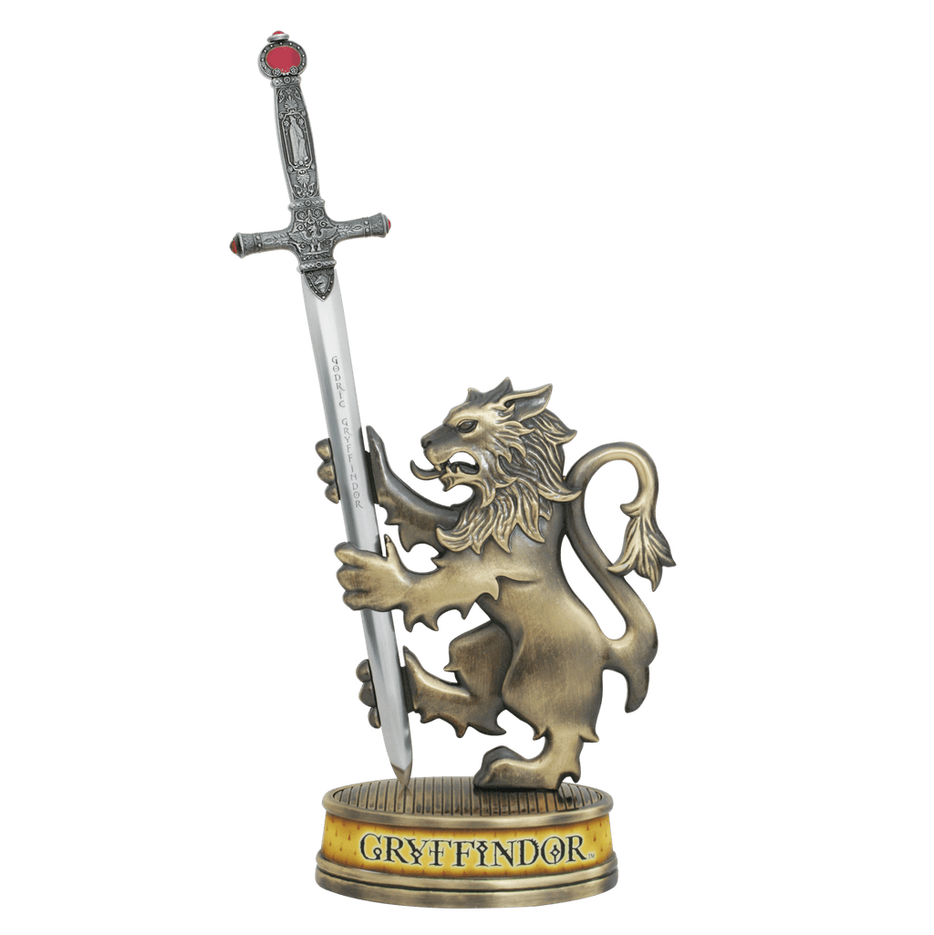 A miniature replica of Godric Gryffindor’s sword – this letter opener comes with a die-cast Gryffindor lion stand, about 9 inches (~ 23 cm) tall.