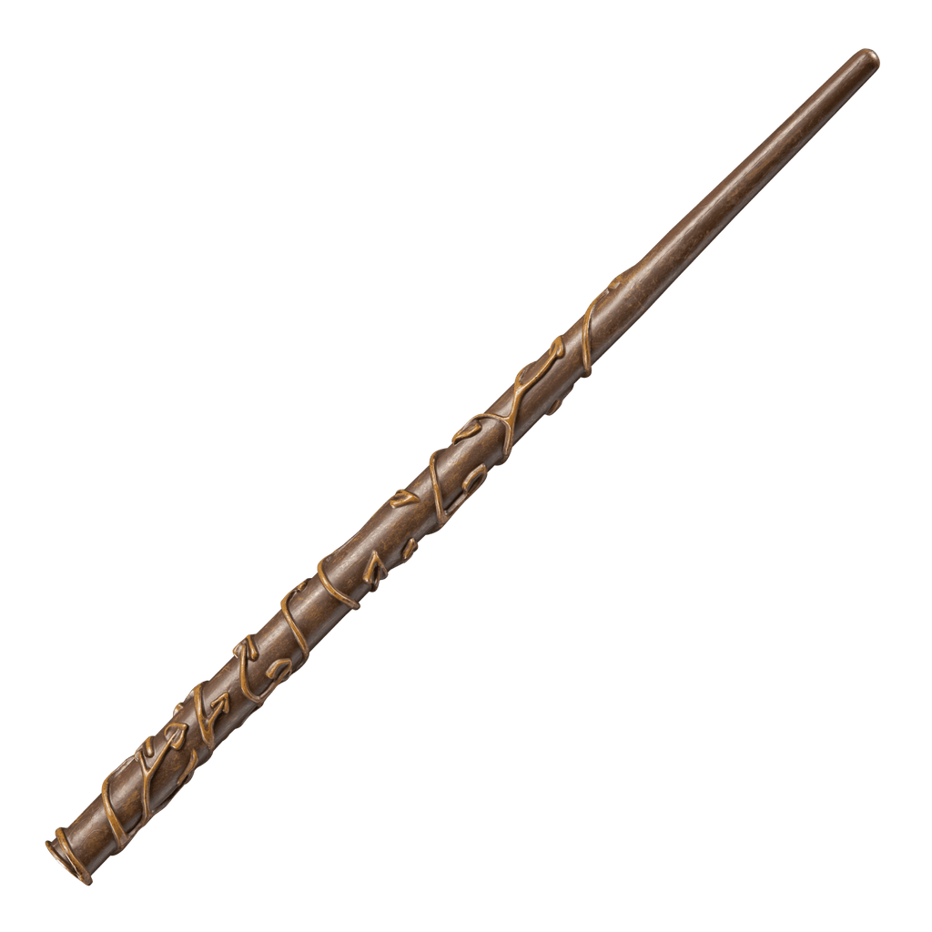 Hermione Granger wand from the Noble Collection. Made of PVC and approximately 30 cm (12 inches) long, faithfully recreated from the movie design. Each wand is sold separately and comes in a display window box. Perfect for play or as a collectible — channel the magic of friendship, courage, and wisdom.