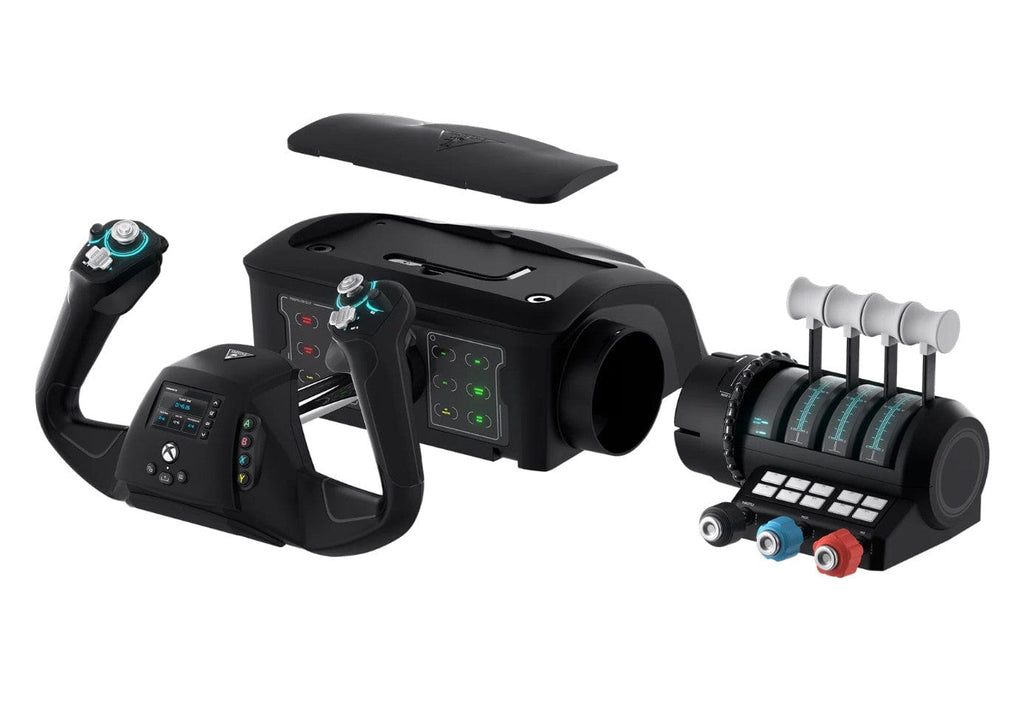 Developed by world-class aeronautical engineers and pilots, the Turtle Beach VelocityOne® Flight Universal Control System offers the most immersive, authentic flying experience on the market. A true-to-life 180° yoke handle with built-in rudder controls provide precise, long-lasting control of any aircraft. The modular throttle quadrant with integrated trim wheel and included custom lever handles offers at-home aviators enhanced customization for both light and heavy aircrafts. The Flight Management Display delivers on-the-fly information, while the status indicator panel provides real-time alerts on supported simulation platforms*. Setup is easy with a simple USB connection for Xbox Series X|S & Xbox One or Windows.