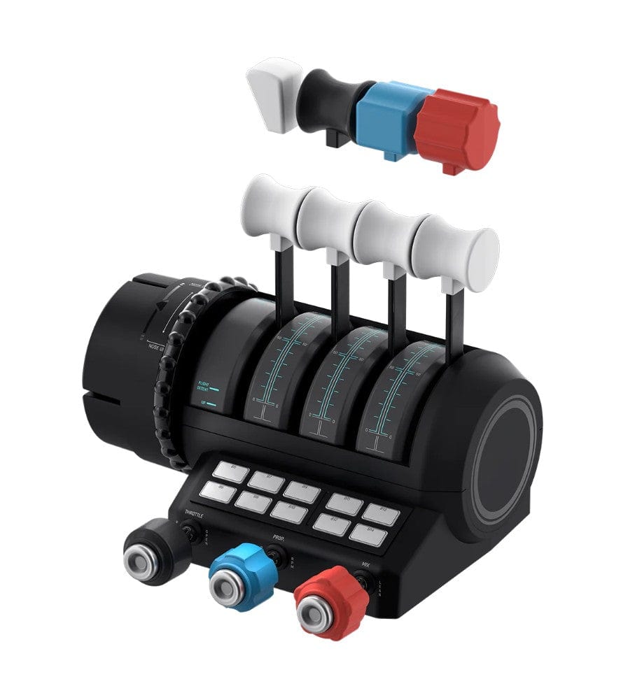 • Buttons: 2× 8-way POV, 2× 4-way HAT, 6× front, 2× rear, Xbox system buttons, 10× throttle quadrant buttons